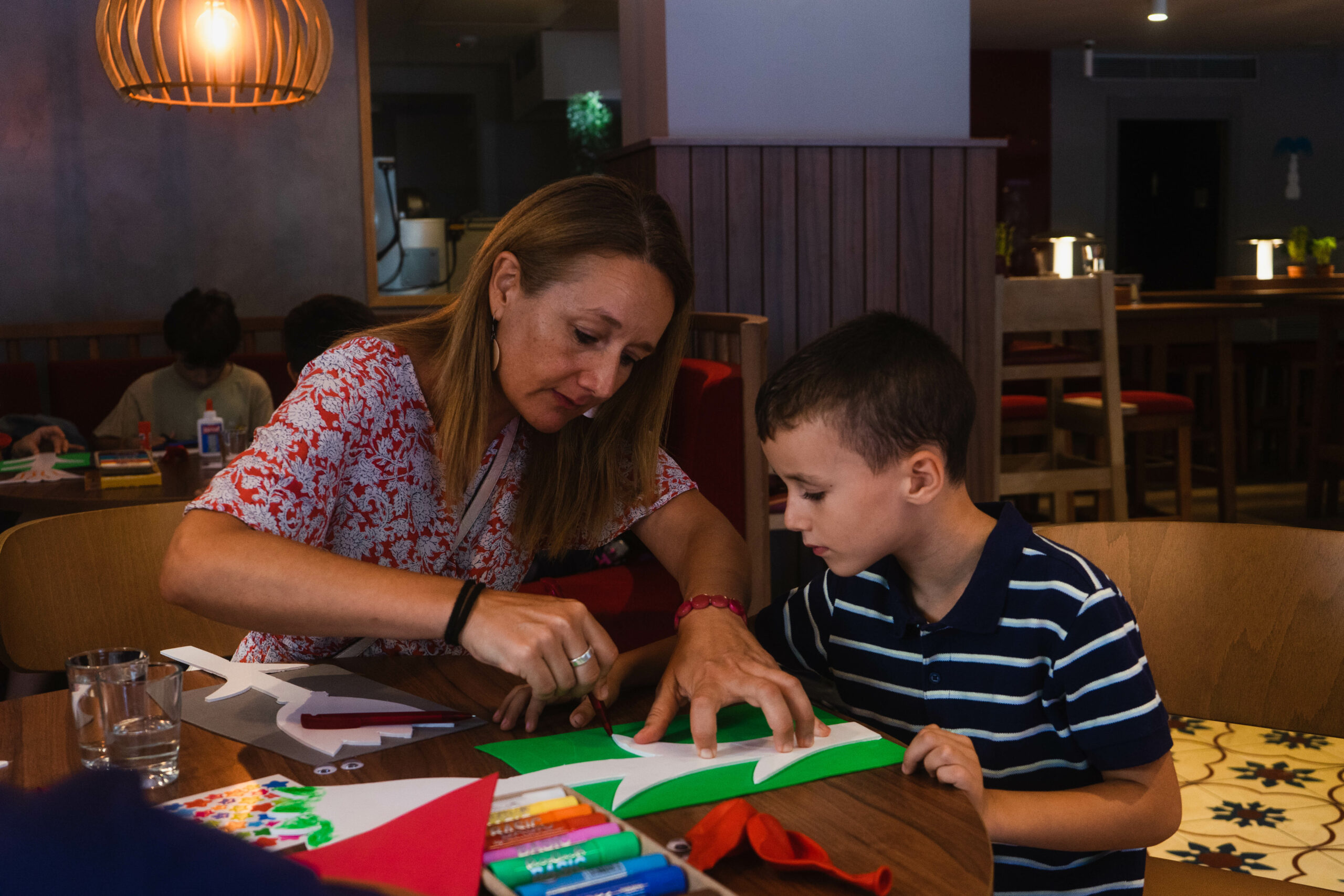 Además de los motivos florales como elemento central de la fiesta, queríamos que las familias ocupasen un lugar privilegiado en la celebración, ya que conforman uno de nuestros públicos más queridos. Por eso, desde el principio decidimos que la propuesta estaría pensada para ser disfrutada en familia… Y que mejor idea que hacerlo mediante la participación en un taller artístico en nuestro restaurante de la Rambla 34. Un espacio muy especial situado en el corazón del Gotic con mucho arte en su interior y con vistas privilegiadas a la Rambla.