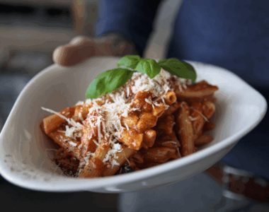 ¡Siempre un ganador! Bacon, cebolla, una pizca de nata, queso italiano duro, yema de huevo, perejil fresco.