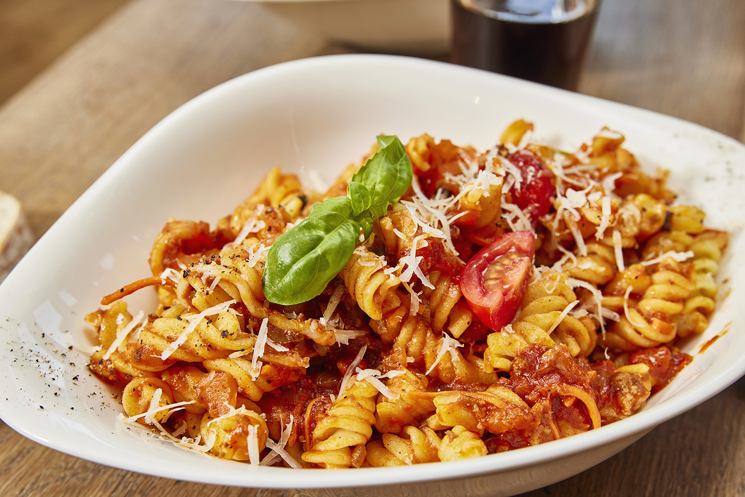 Un clásico. Elaborada con nuestra propia salsa de tomate, la mejor ternera, cebollas, zanahorias, tomates cherry.