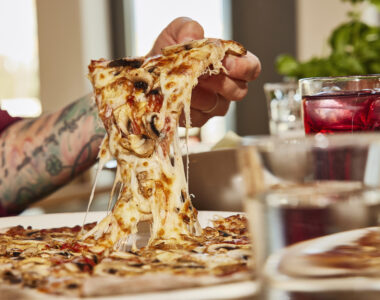 Gorgonzola D.O.P, Grana Padano D.O.P, Scamorza (queso ahumado), tomates semisecos, rúcula y mozzarella.