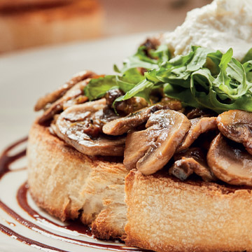 Tosta de ciabatta con champiñones a la plancha y queso ricotta.
